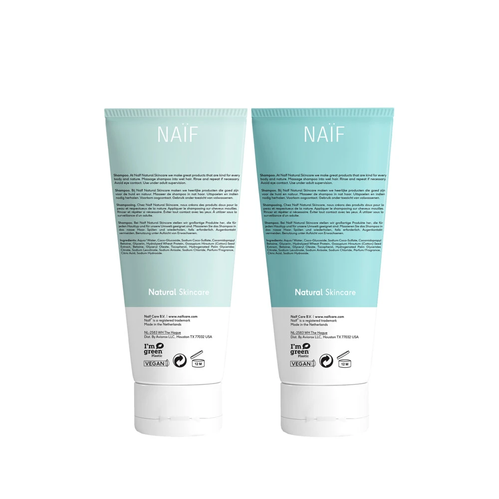 Naïf Shampoo en Conditioner bundel voor Baby & KidsOnze Naïf Nourishing Shampoo zorgt voor schoon haar in alle opzichten. Iedere dag weer, als je dat wilt. De formule met Lijnzaadolie geeft je haar glans en verzorgt je hoofdhuid. Doordat er geen chemische sulfaten aan zijn toegevoegd, zal de shampoo niet extreem schuimen, maar wel reinigen. Onze Naïf Softening Conditioner geeft je haar glans. Het voelt niet alleen zacht aan, het ziet er ook nog eens gezond en verzorgd ui