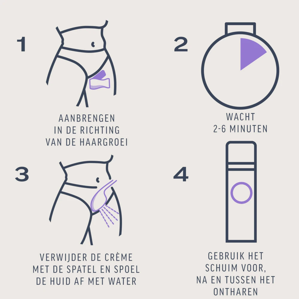 Veet Expert Ontharingscrème Bikini Kit Veet Expert Ontharingscrème Bikini Kit is speciaal ontworpen voor het effectief en snel verwijderen van ongewenste haartjes in het bikinigebied. De crème is verrijkt met aloë vera en vitamine E om de gevoelige huid te hydrateren en verzachten tijdens het ontharingsproces. Met deze kit kun je genieten van een gladde en verzorgde bikinilijn, zonder irritatie of stoppels.Effectieve en snelle ontharing van het bikinigebiedVerrijkt
