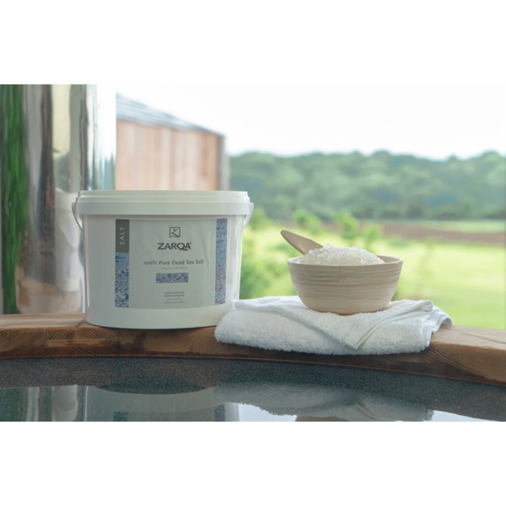 Zarqa 100% Pure Dead Sea Salt Emmer 5 kgZarqa 100% Dode Zeezout bevat een extreem hoog gehalte aan mineralen. Het zout herstelt de huid en is zelfs geschikt voor de meest gevoelige (probleem) huid. Het helpt spieren en gewrichten goed functioneren en ontspannen. Een bad met 100% Dode Zeezout stimuleert de stofwisseling, waardoor afvalstoffen beter worden afgevoerd. Ook te gebruiken in whirlpools.Reinigt en herstelt de huidStimuleert de stofwisselingOntspant spieren en gewrichten0% ParfumVeganHyp